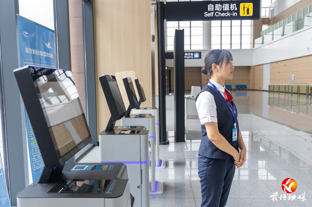 在值机环节,机场设有9个人工值机托运柜台和8台自助值机设备。有行李托运的旅客可以选择人工值机托运柜台办理乘机手续,无行李托运的旅客可选择在自助值机上自助办理乘机手续。各功能区内还贴心的设立了问讯服务台、票务服务台、充电区、饮用水机、母婴室等。此外,机场设立了16个出发航班信息显示屏,显示有航班信息、值机时间、柜台号、航班状态和登机口等内容,方便旅客随时关注出发航班信息,提高了机场的运营效率。