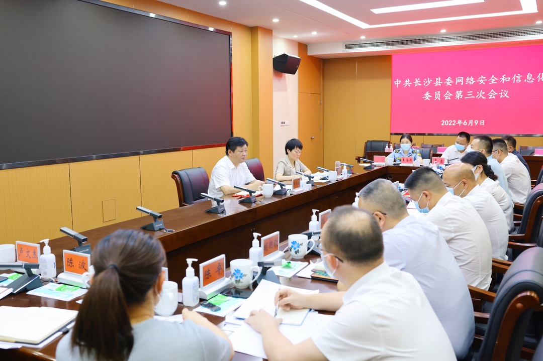 6月9日上午,长沙经开区党工委书记、长沙县委书记、县委网络安全和信息化委员会主任付旭明主持召开县委网络安全和信息化委员会第三次会议,深入学习贯彻习近平总书记关于网络强国的重要思想,传达学习中央网信委第五次会议、省委网信委第五次会议和市委网信委第四次会议精神,审议通过有关文件,研究推进网络安全和信息化发展工作。付旭明强调,全县上下要深入贯彻习近平总书记关于网络强国的重要思想,以迎接学习宣传贯彻党的二十大为主线,牢记嘱托、创新实干、勇攀高峰,强化安全保障、激发强大的数字动能,全力推动全县网信工作迈上新台阶,为奋力实施“强省会”战略,率先打造“三个高地”、建设现代化示范区贡献网信力量。