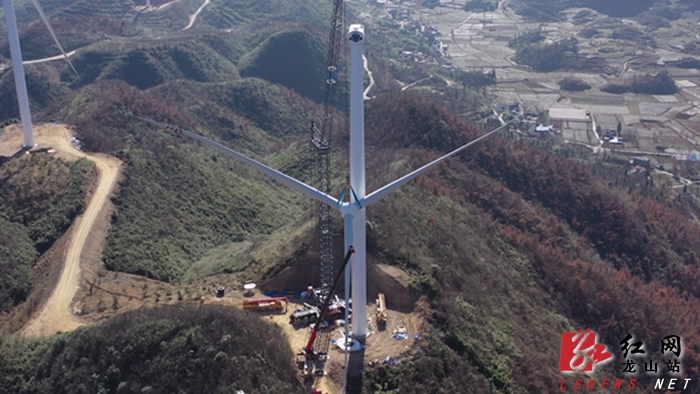 据了解,龙山县大灵山风电场项目是湘西自治州重点项目,项目建设单位为国家电投集团湖南湘西龙山大安新能源有限公司,项目总装机容量为5万千瓦,总投资约为4.1亿元,安装20台单机容量为2500千瓦的风力发电机组,项目年底全容量并网发电,每年发电量约1亿千瓦时,将通过110kV线路送至龙山220kV枫香变电站。
