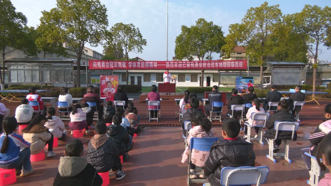 日前,2024年巴黎残奥会射击冠军杨超来到武陵区芦荻山乡,为辖区5所小学的部分师生带来了一场题为“坚持成就梦想 拼搏铸就辉煌”的励志演讲。