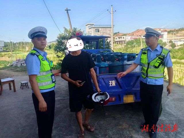 道县:危险!三轮摩托车非法运输液化气罐,交警查获除隐患