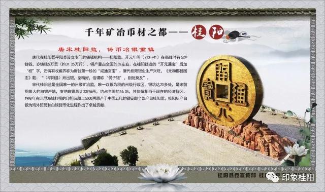 唐代在桂阳(当时叫平阳)设立专门的铸钱机构——桂阳监。开元年间(713-741)在高峰时有 5炉铸钱,岁铸钱5万贯(约31.25万斤),铜产量占全国的5%左右。并在桂阳铸造的“开元通宝”后加“桂”字,并铸有收藏界称唐钱第一珍的“咸通玄宝”。唐代桂阳银业生产兴旺,《元和郡县图志》载:“(平阳县)所出银,至精好,俗谓称‘咼子银’别处莫及”。