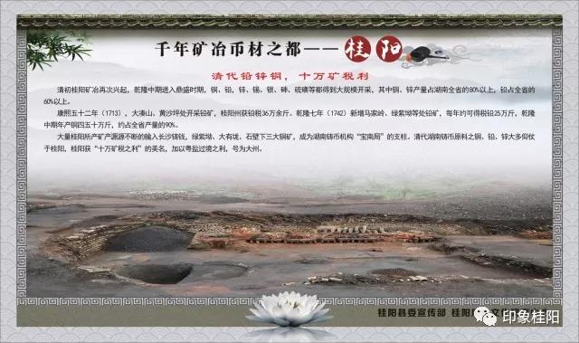 清初桂阳矿冶再次兴起,乾隆中期进入鼎盛时期,铜、铅,锌、锡、银、砷、硫磺等都得到大规模开采,其中铜、锌产量占湖南全省的80%以上,铅占全省的60%以上。