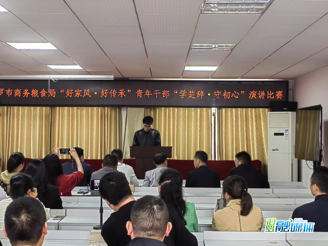 3月28日,汨罗市商务粮食局举办“好家风·好传承”青年干部“学楚辞 守初心”演讲比赛
