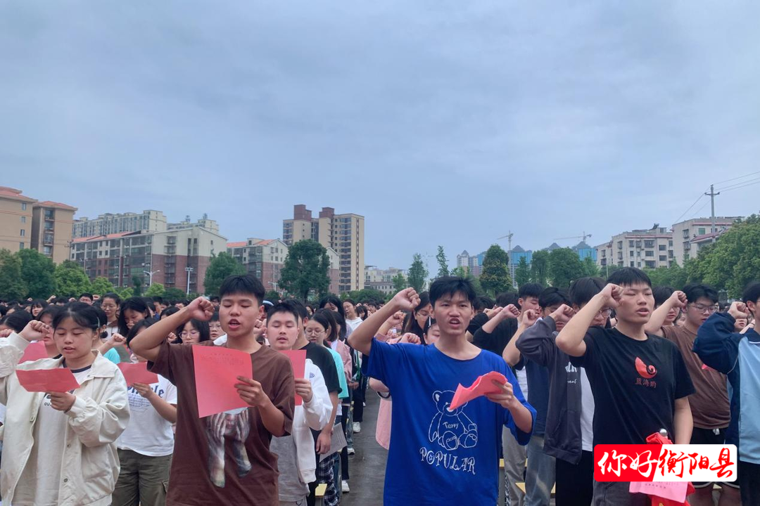 “自觉遵守考试纪律,自觉维护考场秩序,坚决服从考试工作人员管理,绝不违纪违规,信守报考承诺,诚信参加考试,沉着细心考出佳绩!”县三中毕业班学子声音中透露出坚定,眼神中闪烁着自信,铿锵有力的誓言是他们唱响的“战歌”,表达了他们“十年寒窗织文锦,明日华堂谱新章”的决心。