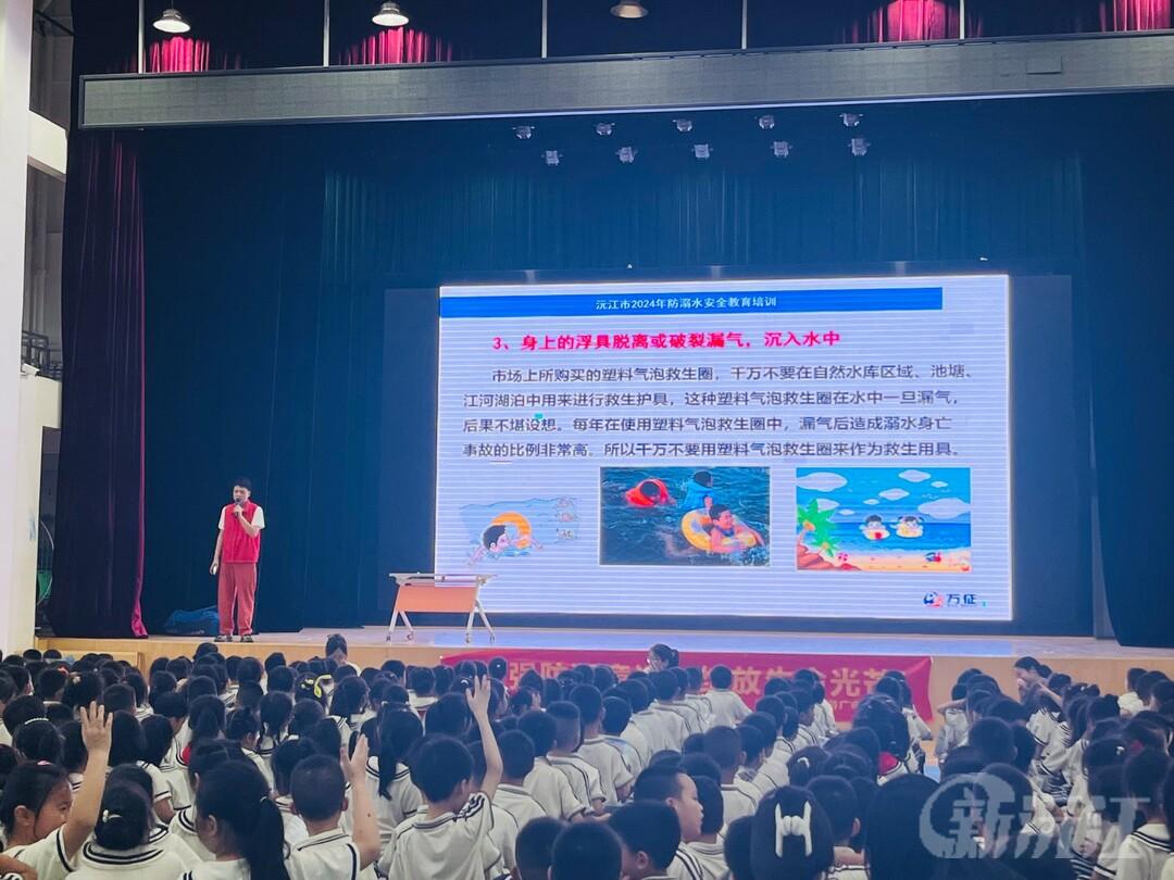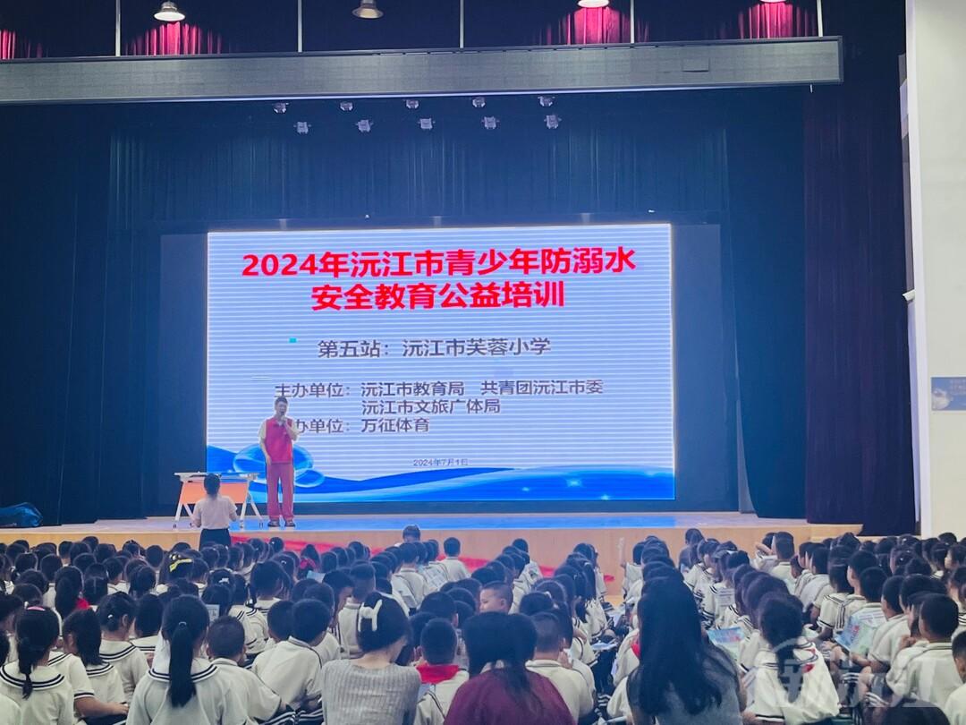 新沅江客户端7月1日讯(通讯员 王琪 李慧 曾静)7月1日下午,沅江市芙蓉学校在风雨球场开展暑期防溺水安全教育专题讲座,邀请万征体育教练员为学生讲解防溺水及急救知识,旨在预防和减少溺水事故发生,提高学生自救自护能力,为学生的暑期安全织密防溺水安全网。