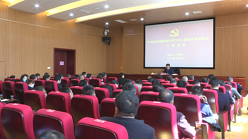 桂东县融媒体中心3月24日讯(记者 邓敏)3月24日上午,县委理论学习中心组组织开展了主题为“学史明理”党史学习教育第一次专题学习。县委书记谭建上主持专题学习并为县委理论学习中心组成员上了一堂生动的党课。县委副书记、县长伍志平等县委理论学习中心组成员参加活动。