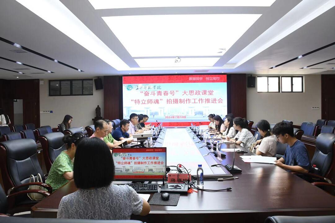 7月10日,长沙师范学院“奋斗青春号”大思政课堂在安沙校区召开《特立师魂》与《老师您好》思政课拍摄制作工作推进会。会议旨在进一步贯彻落实习近平总书记关于思想政治教育的重要指示精神,推进大中小学思想政治教育一体化建设、合力建设《特立师魂》、《老师您好》思政课、提升当代学生思想政治素养和教育水平。