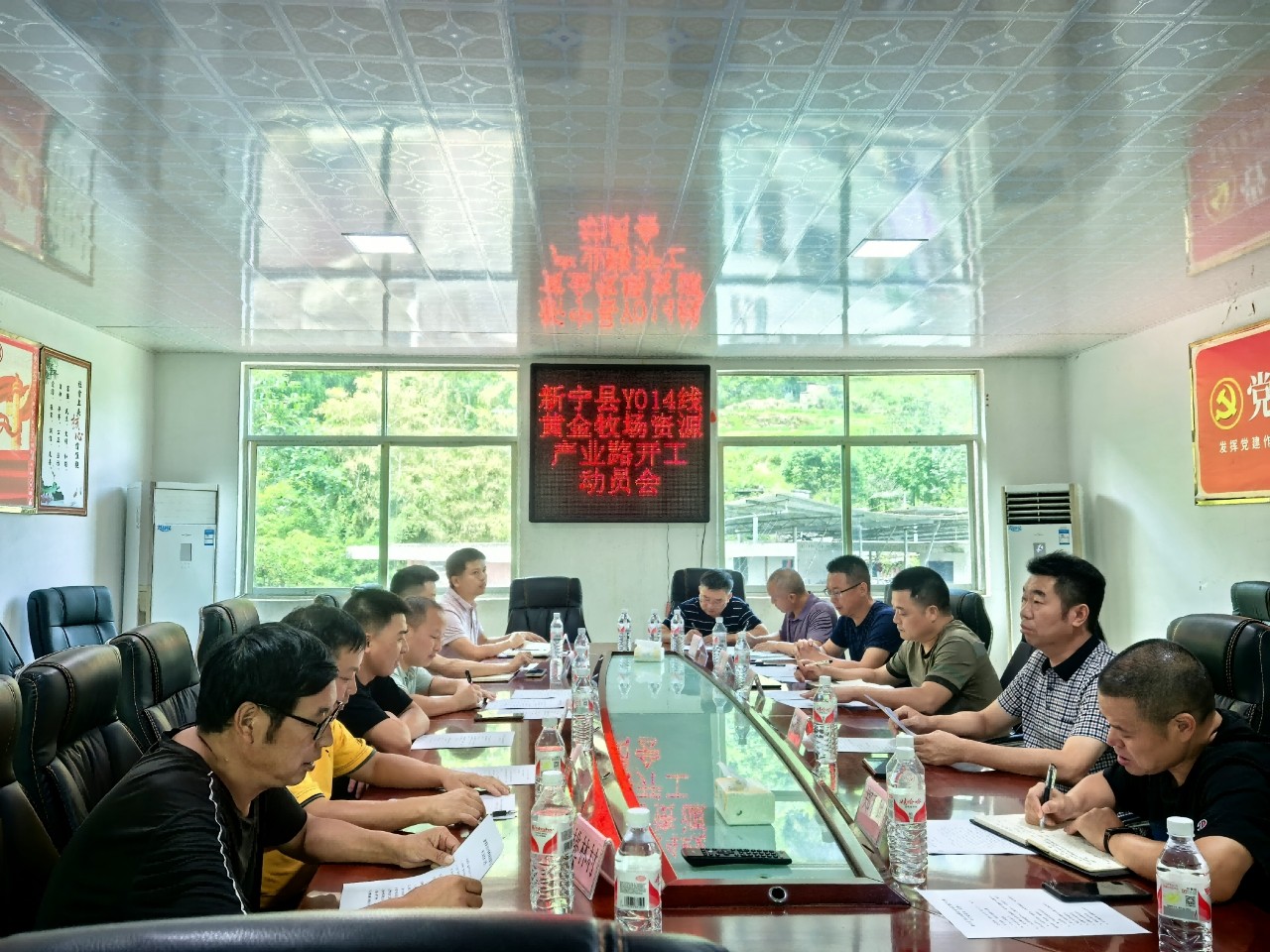 7月16日,在新宁县黄金乡政府四楼会议室,Y014线黄金牧场资源产业路开工动员会召开。县公路建设养护中心、县交通运输局、黄金乡相关负责人及施工、监理单位、沿线村书记参加。