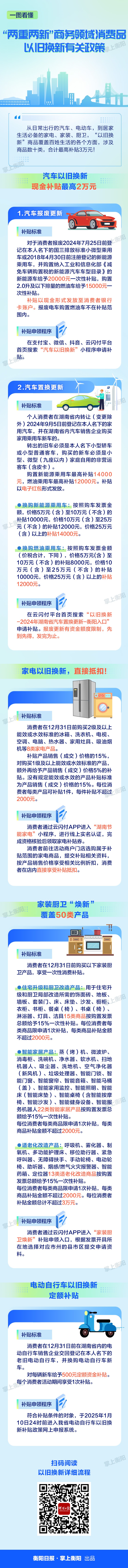 现金补贴、电子红包、直接抵扣,最高3万元! 一图看懂“以旧换新”