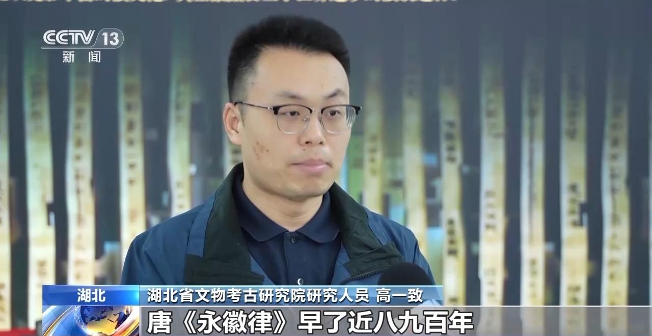 湖北省文物考古研究院研究人员 高一致:以《秦律十八种》为例来说,其中包括《田律》《厩苑律》等等以它们为代表的睡虎地秦律体系,构建了目前所见我国最早的法典体系,比我国传世的法典唐《永徽律》早了近八九百年。