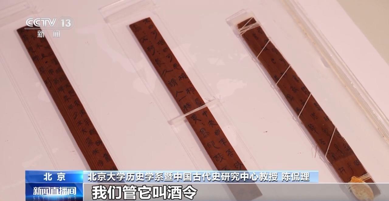 北京大学历史学系暨中国古代史研究中心教授 陈侃理:喝酒时唱的歌,我们管它叫酒令,“饮不醉,非江汉也,醉不归,夜未半。”就是我们喝酒喝得还不够,我们喝的酒还没有像长江之水、汉江之水那么多,醉不归,喝醉了也不要回家,还有一些骰子是配合酒令使用的。