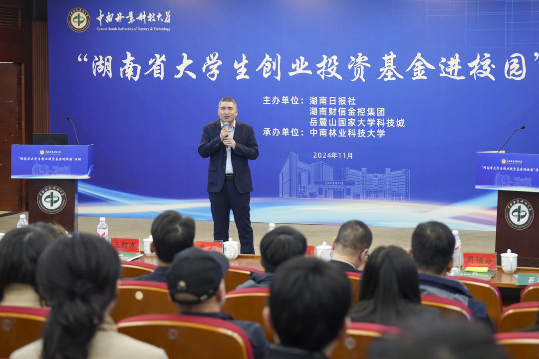 11月18日,“湖南省大学生创业投资基金进校园”第三场宣传活动在中南林业科技大学举行。活动现场,岳麓山大学科技城管理委员会科技金融部部长吴麒麟从基金基本情况、运营方案、申报指南三个方面对基金相关情况进行了详细介绍。