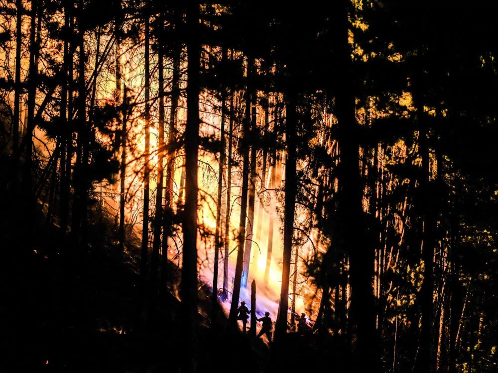 3月21日,在四川省甘孜藏族自治州雅江县,四川省森林消防总队消防员在火场扑救山火