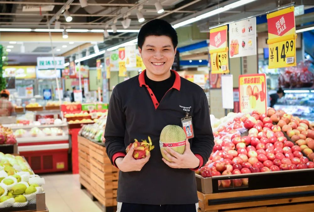 这是3月22日在广东省深圳华润万家超市翠竹店拍摄的“心青年”冉钰龙。冉钰龙是这里的员工,主要负责整理生鲜果蔬区的货品和检查产品保质期。“心青年”是指心智障碍青年,包括孤独症青年、唐氏青年、脑瘫青年等。近年来,随着社会更多的包容和理解,许多“心青年”有机会走上工作岗位,尝试力所能及的工作