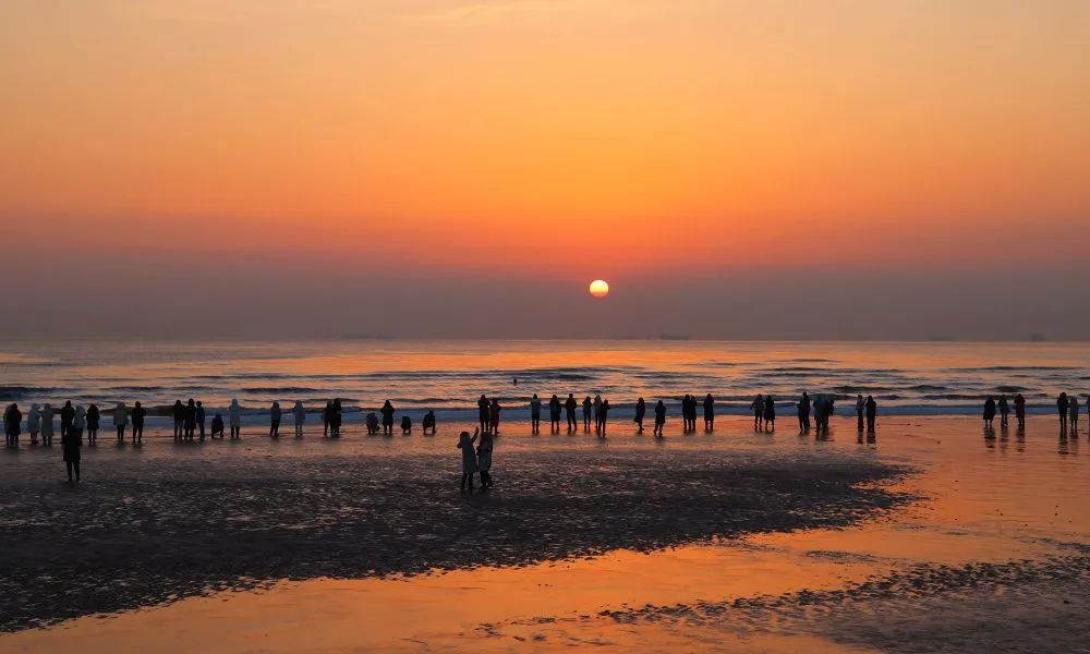 1月1日,市民在河北省秦皇岛市北戴河区浅水湾浴场海滩观看日出