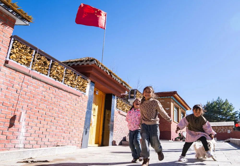 12月15日,在西藏日喀则吉隆县吉隆镇,达曼新村的孩子们在玩耍