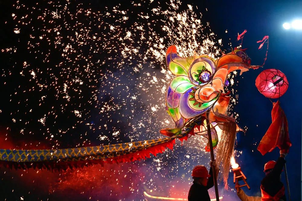 2月23日晚,人们在贵州省台江县参加苗族“舞龙嘘花”活动
