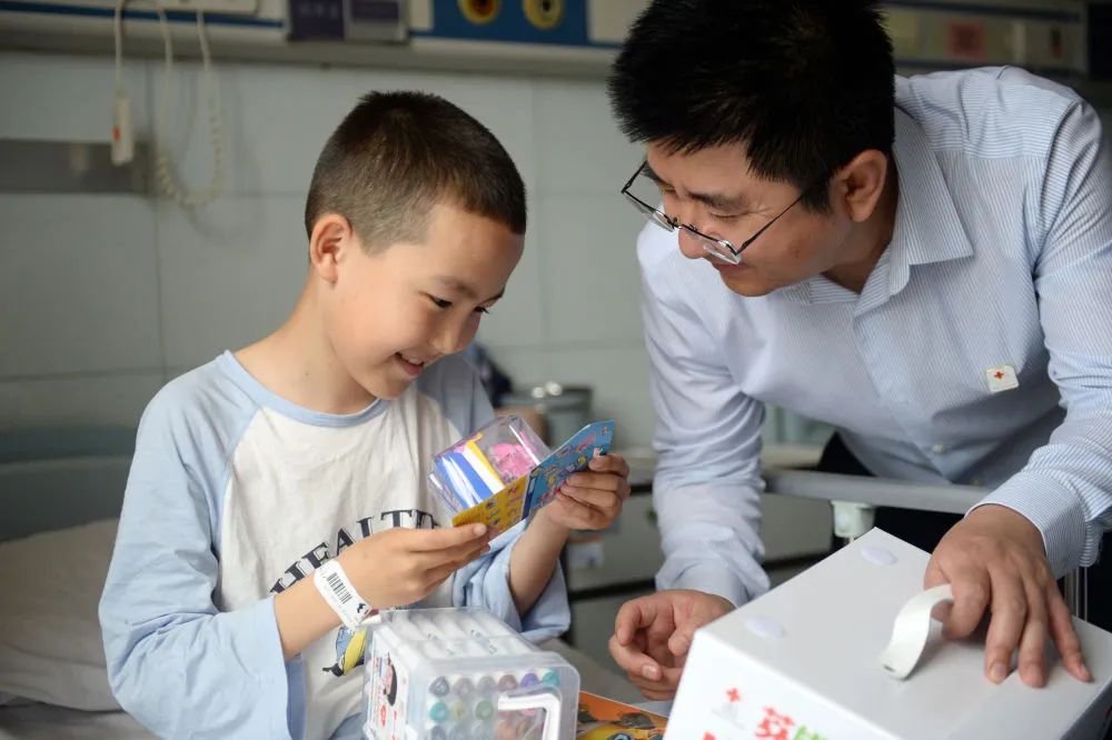 4月12日,在山东第一医科大学附属中心医院,中国红十字基金会工作人员为一名成功进行完手术的孩子送上礼物。今年3月,工作人员与医疗专家赴新疆阿勒泰、克拉玛依、塔城等地筛查先心病儿童,之后,符合手术指征的19名患儿在山东济南接受免费手术治疗。这些孩子的救治得益于中国红十字基金会“天使之旅”先心病儿童筛查救助爱心公益行动