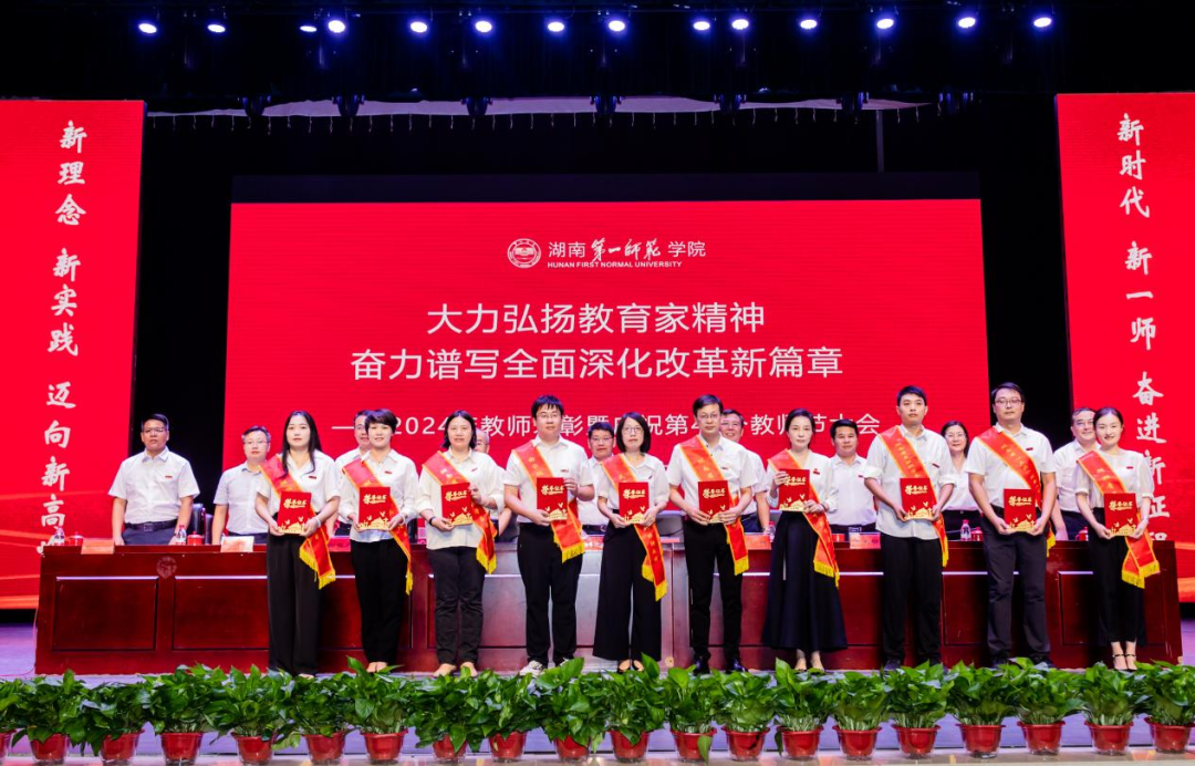 2024年9月6日下午,湖南第一师范学院在东方红校区田汉剧场举行2024年教师表彰暨庆祝第40个教师节大会
