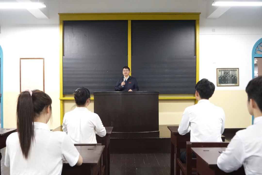 2024年4月17日,湖南第一师范学院党委书记罗成翼在“第八班教室”面向全省高校学生代表开展沉浸式宣讲
