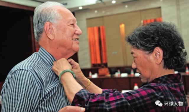 2014年5月,妻子李世英为黄旭华整理着装