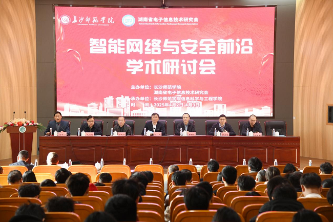 近日,由湖南电子信息技术研究会、长沙师范学院主办,长沙师范学院信息科学与工程学院承办的“智能网络与安全前沿学术研讨会”在长沙师范学院举办。来自国防科技大学、华中科技大学、浙江大学、南京大学、湖南大学、湖南文理学院等高校的知名专家学者以及信息科学与工程学院师生代表共200余人参加研讨会。