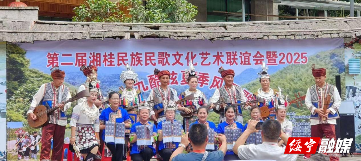 新绥宁客户端6月15日讯(记者 孙芳华 通讯员 龙科成)6月14日,第二届湘桂民族民歌文化艺术联谊会暨2025五一九酷弦夏季风民歌对对碰邀约会在寨市苗族侗族乡界溪村举行,湘桂两省绥宁、城步、通道、龙胜四个县的民歌爱好者和游客们齐聚一堂,共同沉浸在这场充满民族风情的音乐狂欢之中。