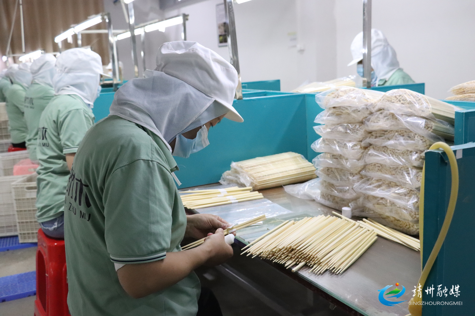 湖南辰铭竹木制品有限公司员工正忙着打包竹筷(钦苏芬 摄)