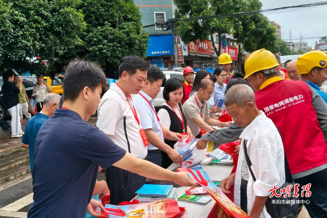 耒阳融媒6月19日讯(记者 江维东)6月18日,新市镇联合应急管理、消防、市场监管等多个职能部门,在该镇街道市场旁开展综合安全宣传活动,为群众送上“安全知识大礼包”,全方位筑牢安全防线。