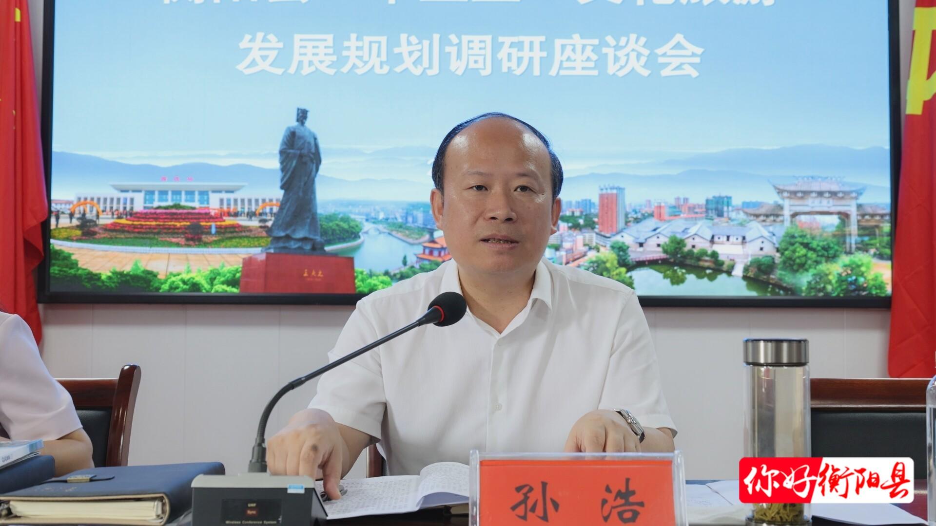 衡阳县融媒6月20日讯(记者:王佩璐 吴展名)6月20日,县委书记孙浩围绕“文化旅游发展”这一主题,开展“十五五”规划专题调研。他强调,要深入学习贯彻习近平文化思想,高度重视“十五五”时期文化旅游规划编制工作,坚定文化自信,发挥资源优势,推进全县文旅事业高质量发展。县委副书记、代县长杨峰,县委副书记、宣传部部长刘洋参加。