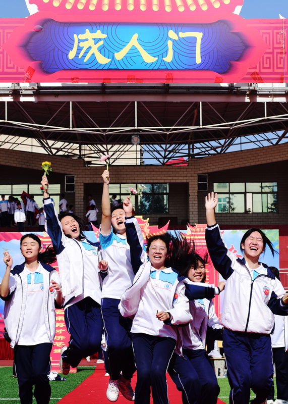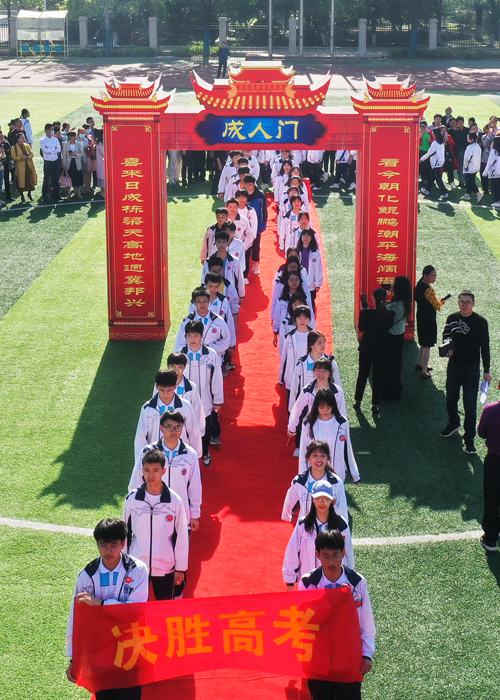 仪式上,佩戴成人徽章、成人宣誓、过成人门、跨成功门、赠送宪法读本、师生心声祝福、舞蹈表演等环节相继进行,现场气氛热烈。
