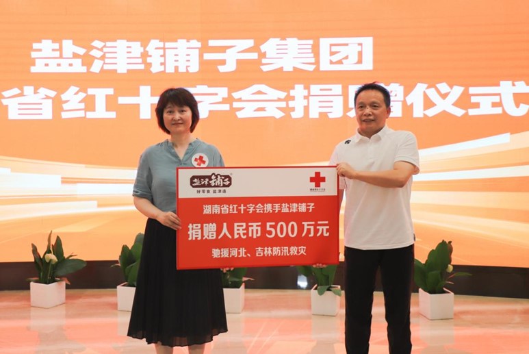 盐津铺子集团通过湖南省红十字会向河北、吉林捐赠现金500万元。