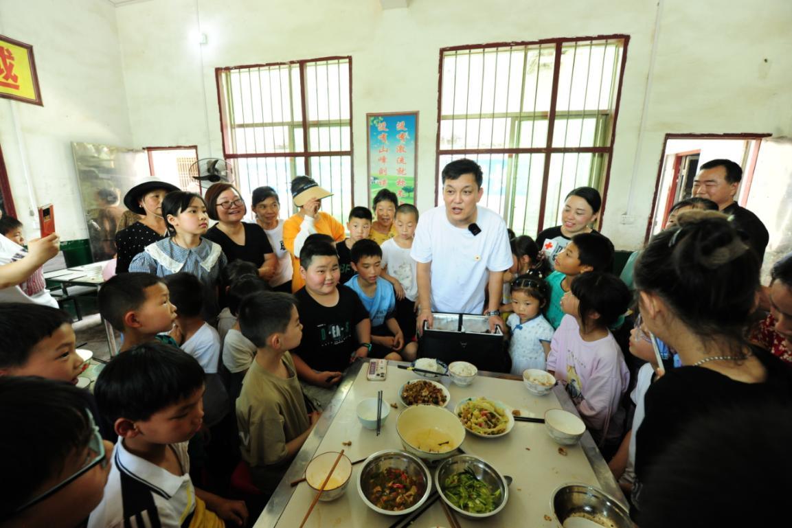 前期,省红十字会通过实地走访,向大塘小学的留守儿童征集了“微心愿”,按照心愿单准备了“心愿礼物”。在学校食堂,李锐和孩子们围坐一起,畅谈心愿梦想,当看到李锐拿出精心准备的炸鸡等零食后,孩子们欢呼雀跃,“哇!竟然是我们一直想吃的炸鸡!”达达和燕燕异口同声说。站在一旁的罗校长也激动地说:“孩子们只有在极少数节日里才能吃到的炸鸡,今天都吃到了,谢谢锐哥,谢谢省红十字会。”