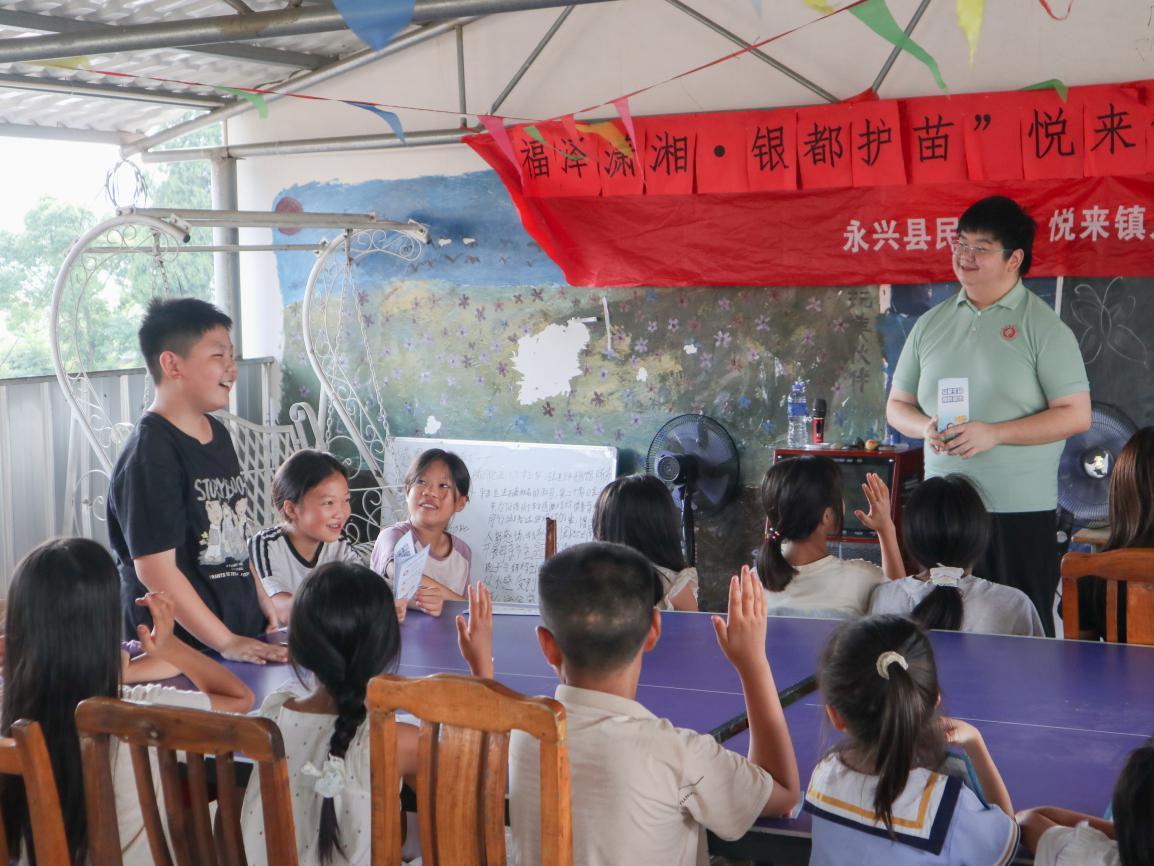 湖南日报·新湖南客户端7月21日讯(通讯员 张雪妮 刘易斯 王恩乐)7月11日,在永兴县悦来镇政府支持下,衡阳师范学院文学院“寸草心计划”实践服务团,为悦来镇鸦鹊村留守儿童带来一堂别样的防溺水生命安全课,于“玩美伙伴”图书馆筑牢暑期安全防线。