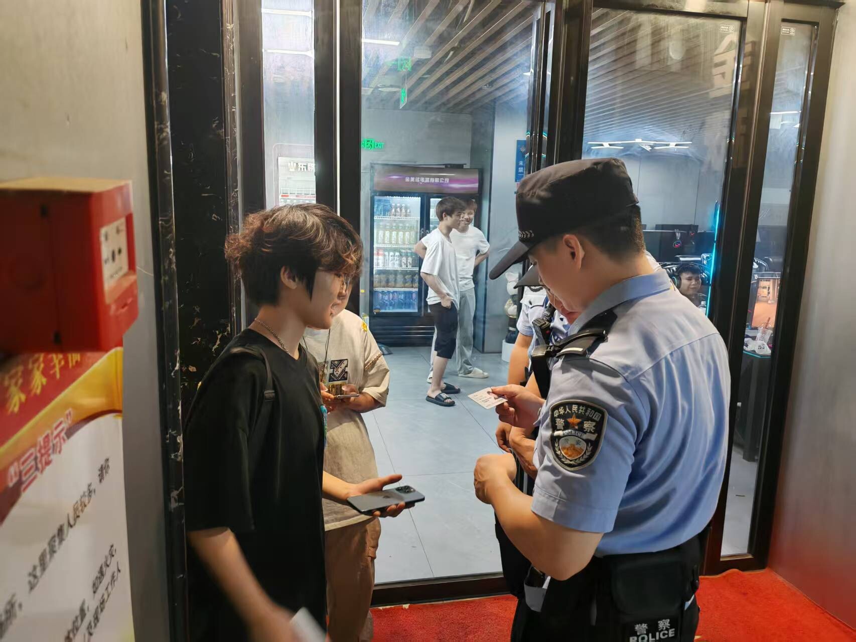 此次行动聚焦未成年人易接触的“衣食住行”领域,民警辅警重点核查了KTV等娱乐场所是否存在违规接待未成年人、有偿陪侍等问题,同时对网吧是否违规接纳未成年人情况进行了专项检查。并严查商铺向未成年人售卖烟酒行为,对宾馆落实未成年人入住“五必须”规定情况进行细致检查。检查过程中,民警还向从业人员及消费者普及防火、防盗、防安全事故知识,现场指导消防器材使用,排查监控盲区等安全隐患。