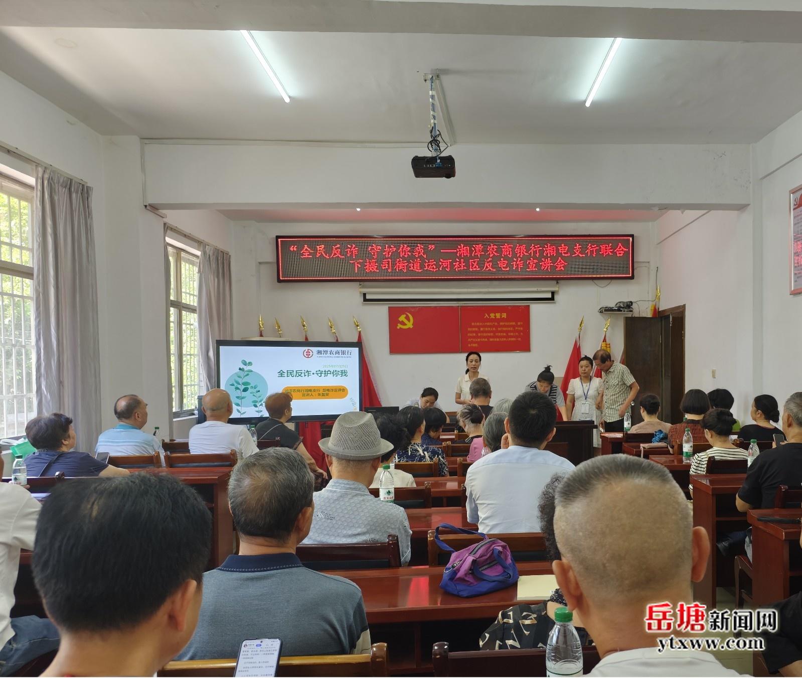 岳塘融媒7月31日讯(通讯员:陈思鹏)为进一步提升居民的反诈意识和反诈能力,近日,湘潭市岳塘区下摄司街道运河社区联合湘潭农商银行湘电支行开展反诈宣传活动。
