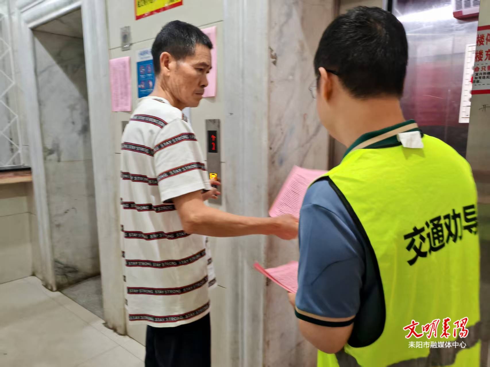 耒阳融媒8月5日讯(记者 江维东)8月5日, 蔡子池街道联合交警部门、社区志愿者在辖区多个居民小区开展“交通安全进社区”主题宣传活动,通过案例讲解、互动体验、入户宣传等形式,向居民普及交通安全知识,助力提升文明出行意识。
