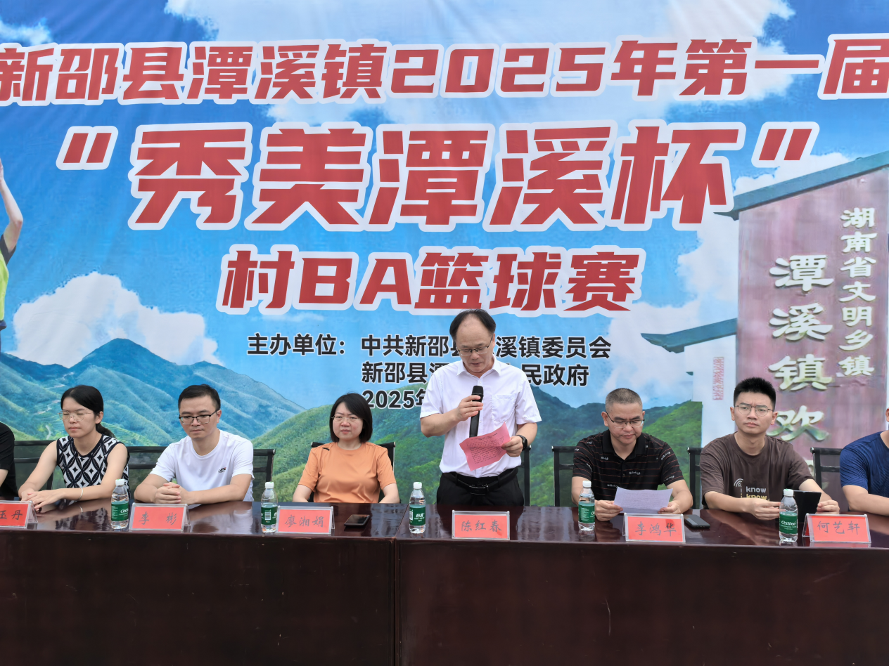新新邵客户端8月6日讯(通讯员 张思奇)为丰富活跃乡土文化,充实群众精神文化生活,展示潭溪儿女昂扬奋进的精神风采,近日,新邵县潭溪镇2025年第一届“秀美潭溪杯”村BA篮球赛在镇职工体育场隆重开幕。潭溪镇党政领导与参赛队员、干部群众欢聚一堂,共同举行球赛开幕仪式。在热烈氛围中,该镇镇长陈红春为开幕式致辞,镇党委书记廖湘娟宣布首届“秀美潭溪杯”村BA篮球赛正式开赛。