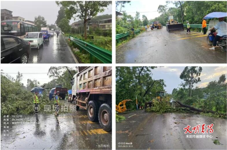 在356国道南京镇龙凤村路段,狂风呼啸,多棵树木被拦腰折断,倒伏的树枝横亘在整条路面上,致使交通一度陷入瘫痪。南京镇应急办接到报告后,即刻启动应急预案。10名应急人员迅速集结,携带电锯、砍刀以及叉车等专业工具,火速赶赴现场。与此同时,交警部门也同步抵达,迅速设置警示标志,有序疏导车流。经过1个小时的紧张作业,横在路面的树枝被成功清理干净,国道得以恢复通行。