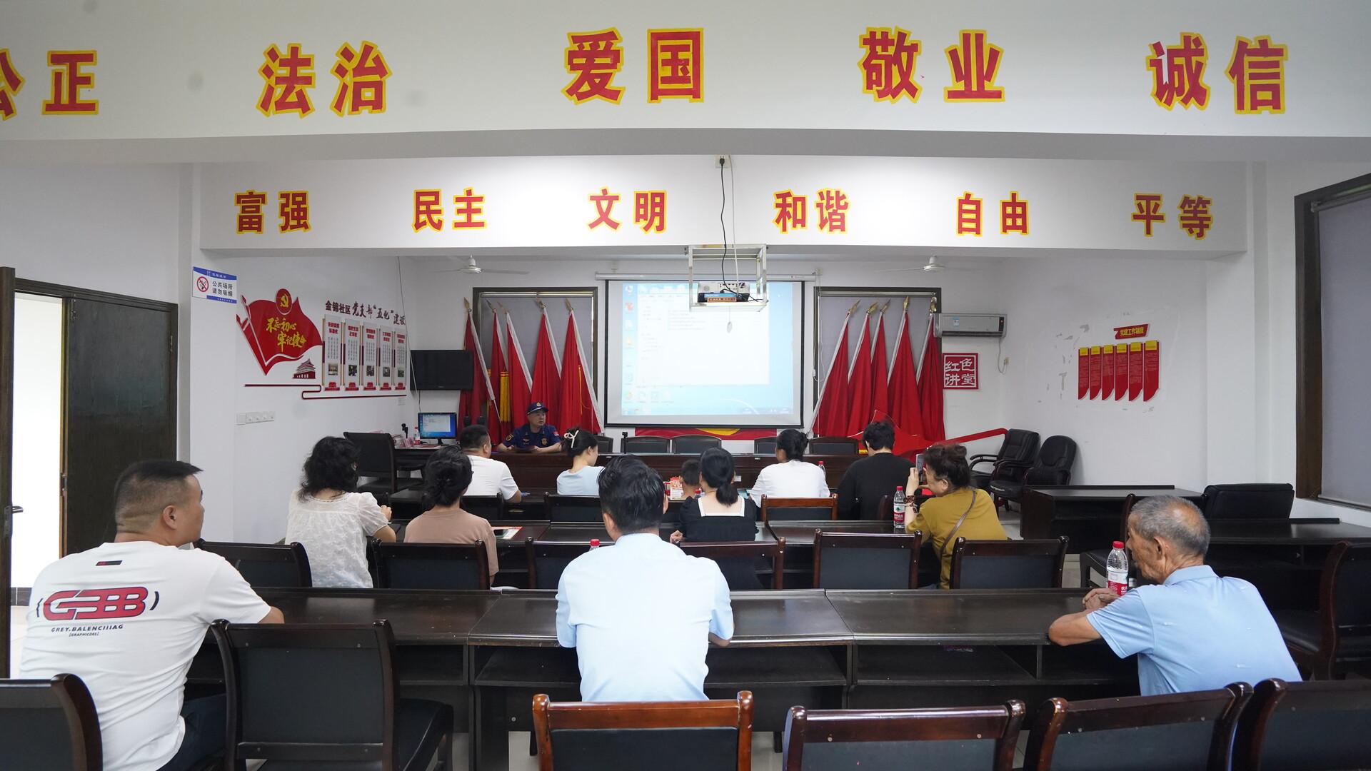 宣传培训,安全意识“入民心”。深入辖区老旧小区开展消防安全知识培训活动,联合小区物业在居民群内推送消防安全知识,推动街道社区工作人员、志愿者通过“敲门入户”送平安、张贴海报等方式向居民科普防火、灭火和逃生的消防知识,增强居民的消防安全防范意识。