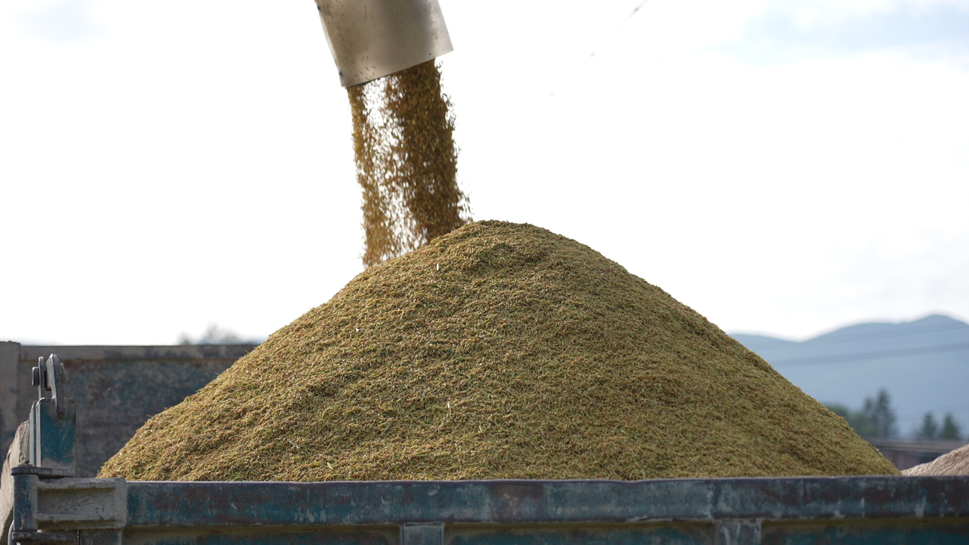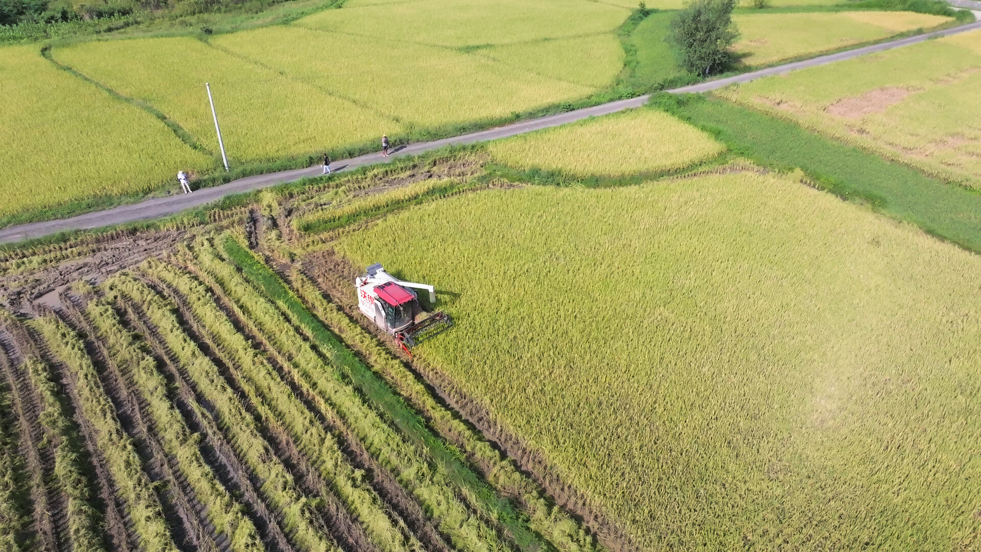 伴随着收割机的阵阵轰鸣,金黄的稻穗被精准卷入脱粒箱,经过机械作业后,饱满的稻谷尽数收入仓中,粉碎后的秸秆则从收割机尾部有序排出,既保障了收割效率,也实现了秸秆的初步资源化处理,整个收割流程高效顺畅。