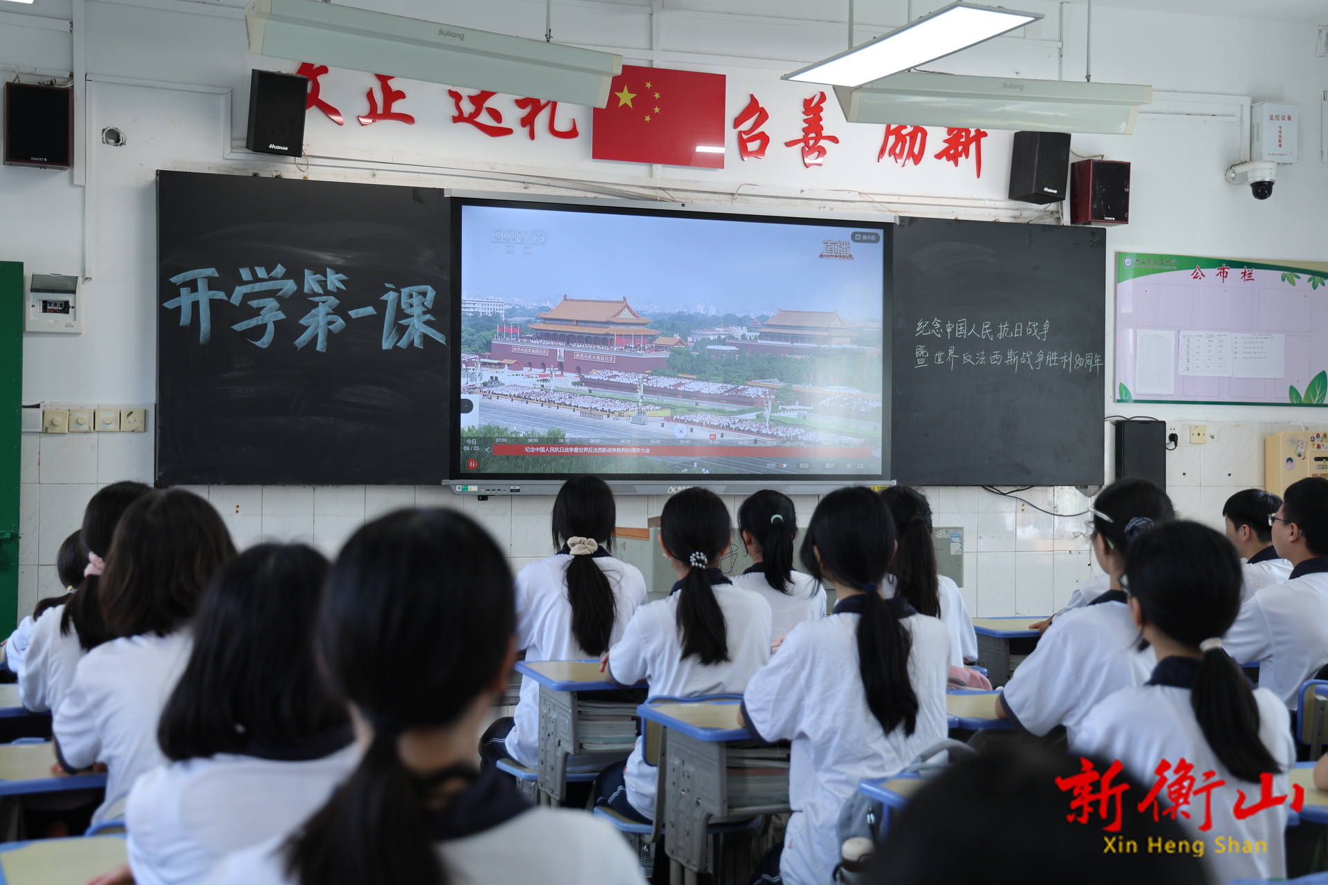 新衡山客户端9月3日讯(记者:蒋鹏 旷雨澄)衡山县文召中学将开学第一课与爱国主义教育紧密结合,通过军事训练、观看阅兵,让学子们铭记历史、缅怀先烈,传承伟大抗战精神。