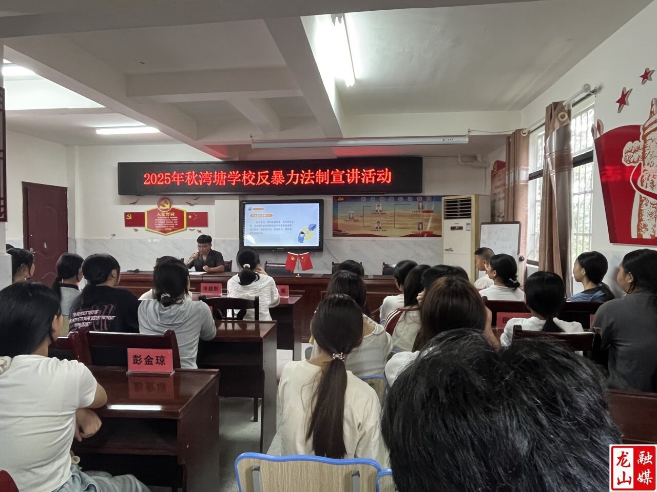 龙山县融媒体中心9月9日讯(通讯员 向鑫桢 彭兵 田超群)9月9日上午,县城郊人民法院的法官一行到洗洛镇湾塘九年制学校,为该校师生带来了一场主题鲜明、内容生动的“反校园暴力”法治宣讲活动,为平安校园、法治校园建设注入坚实的司法力量。