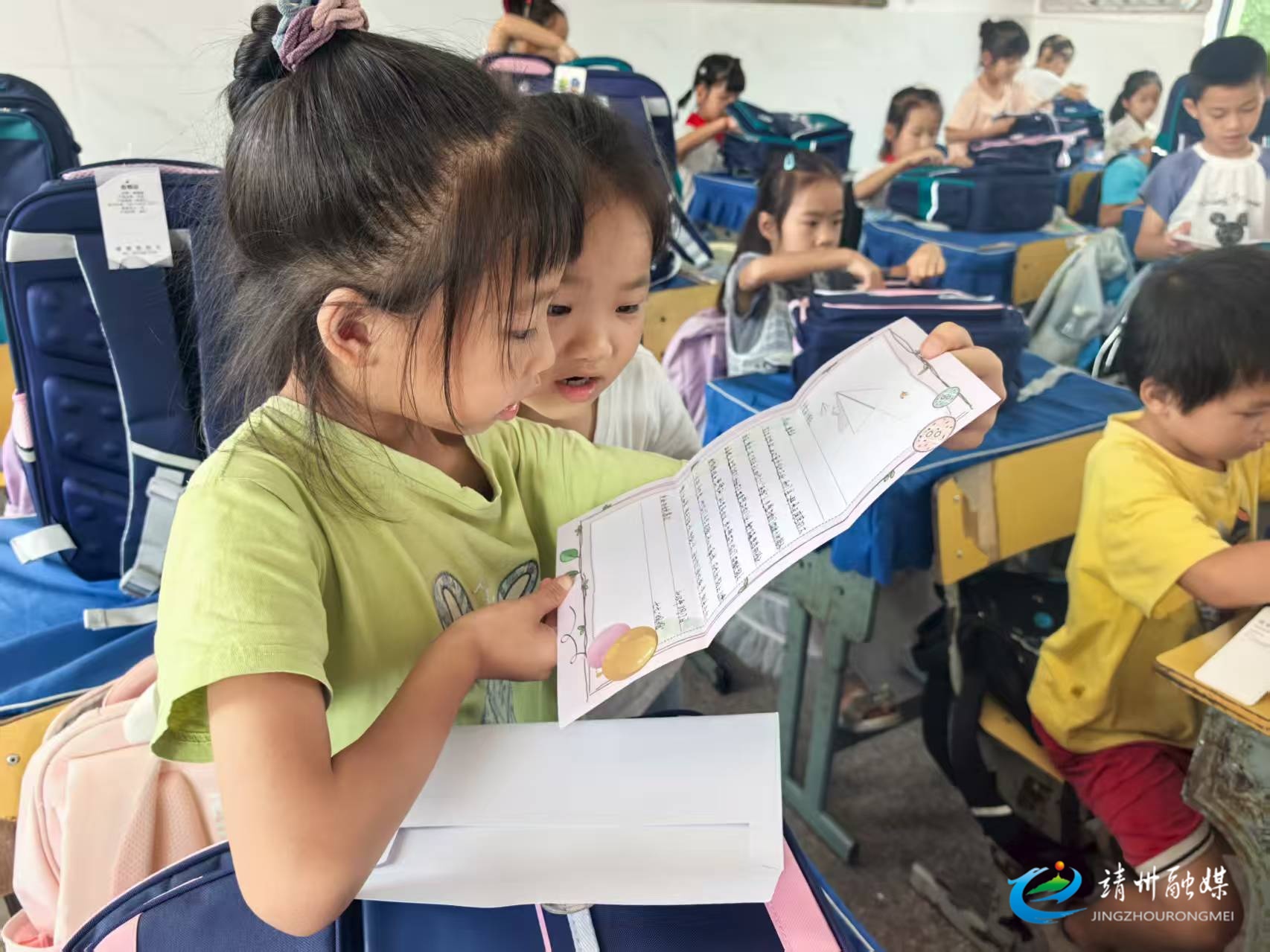小朋友们展示获赠物品(钦苏芬 摄)