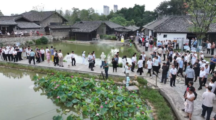在驿道文化体验馆,嘉宾们借助数字科技重回历史现场,亲身感受古驿道上“策马传书”的紧迫与传奇;步入潘氏宗祠,铜湾镇辰河汉剧团的悠扬唱腔与古朴戏台相映成趣,令人仿佛穿越时空,领略传统戏曲的深厚韵味;在大乐元音广场,嘉宾沉浸于典雅乐器与千年古村形成的和谐对话,余音缭绕,触动心灵;在国乐文化体验馆,嘉宾不仅可聆听讲解,更可亲手体验乐器演奏,感受国乐背后的文化脉搏;还可以漫步于三叠月塘,粼粼水光与精彩演出交织,移步换景之中,尽显荆坪古村文旅融合的生动魅力。