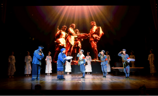 随着灯光亮起,音乐响起,轰隆隆的炮火声瞬间将观众带入1934年阴霾下的沙洲村,跌宕起伏的剧情、极具感染力的音乐搭配演员生动传情的演绎,让现场观众深深地沉浸其中。“当被子被剪开的那一刻,眼泪完全止不住。”现场观众黄伟华深受触动,“这不仅是一场演出,更是军民鱼水情最生动的诠释。”