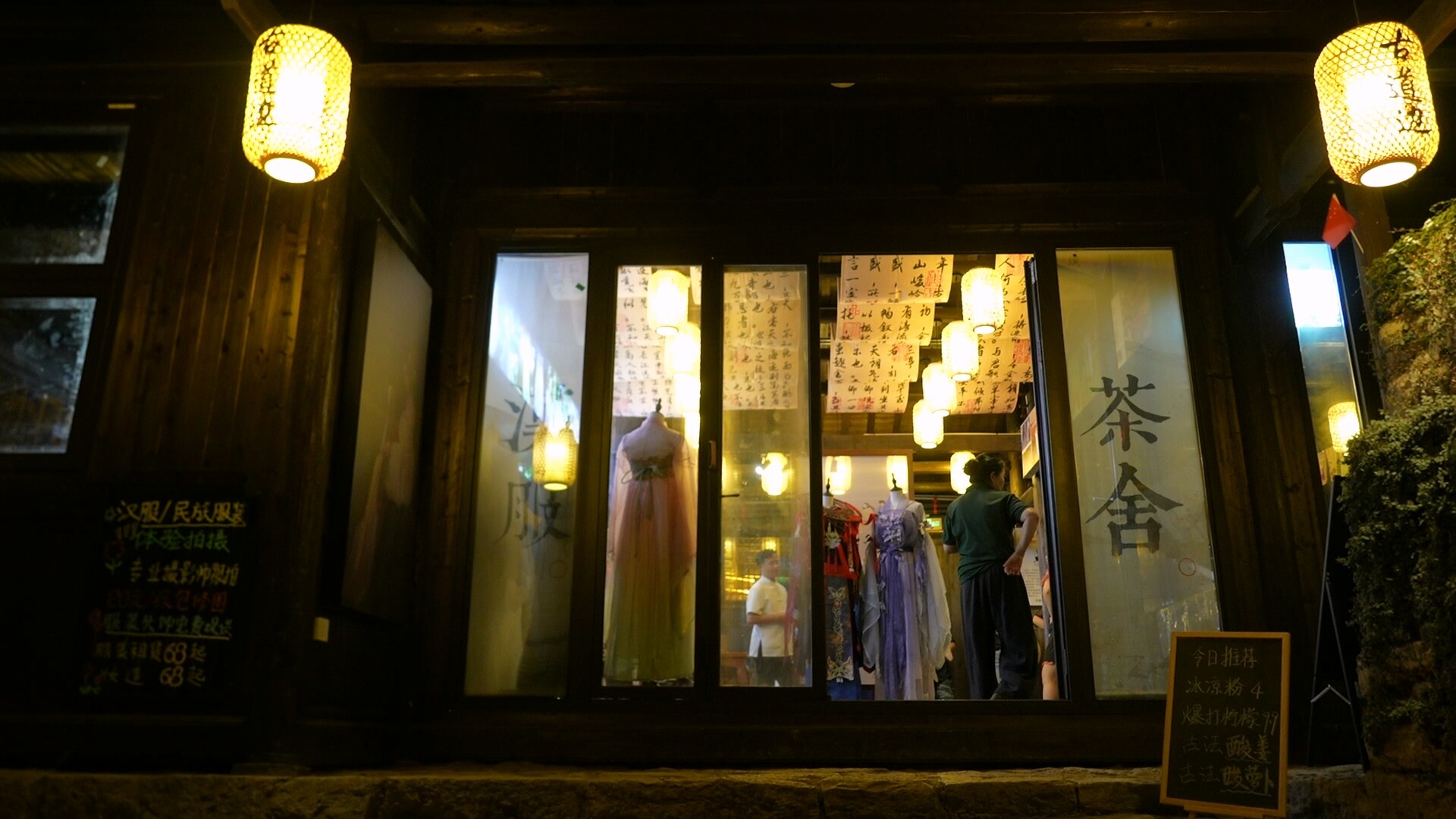 新业态的入驻更为古村注入了新鲜活力。“古道边汉服茶社”依托荆坪千年的人文历史底蕴,以汉服租赁和茶艺品鉴为核心服务,将传统服饰、茶道与古建筑环境有机融合。游客可以穿汉服漫步青石古道,也能在茶社里静心品茗,感受跨越千年的韵味。