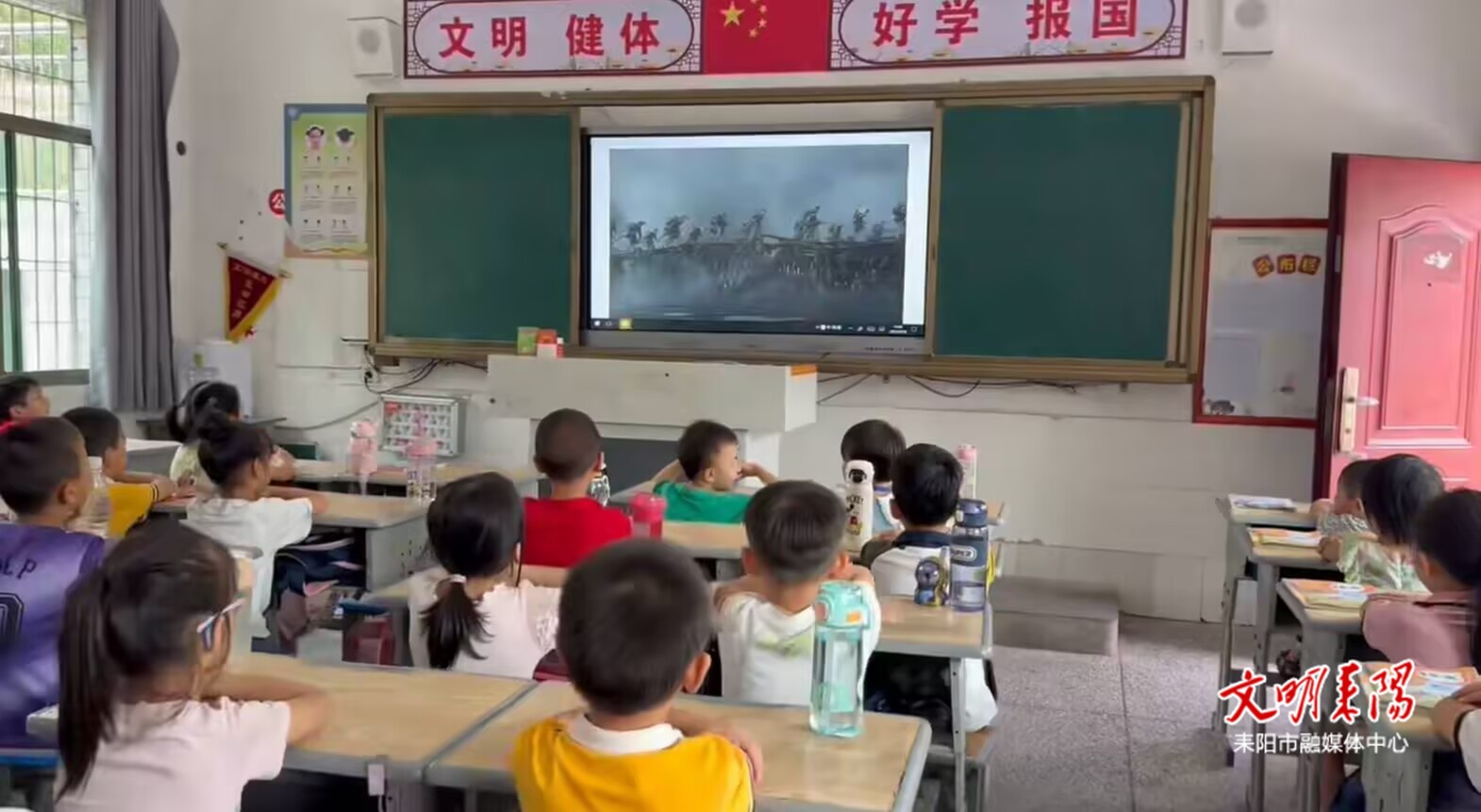 9月18日,彭桥完小在各教室开展了“九一八”爱国教育活动,通过播放抗日电影,为学生们上了一堂生动的爱国主义教育课。