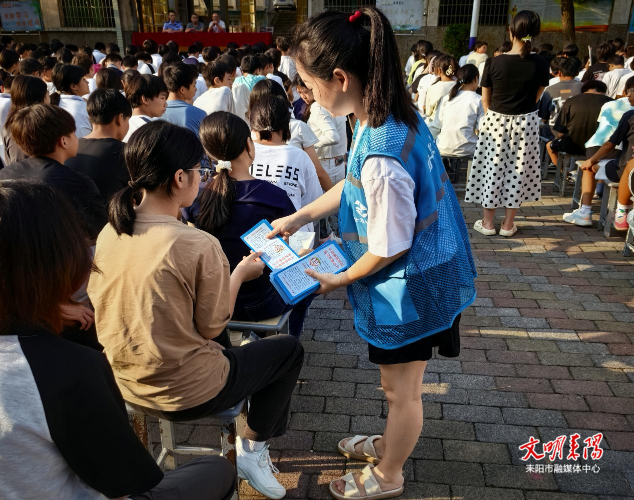 耒阳融媒9月19日讯(记者 梁斌 通讯员 陆元堃)9月18日上午,黄市镇组织派出所、禁毒办相关工作人员及志愿者走进黄市中学,开展禁毒及校园霸凌“开学第一课”法治讲座宣传活动,为数百位学生带来了一场别开生面的法律课堂。